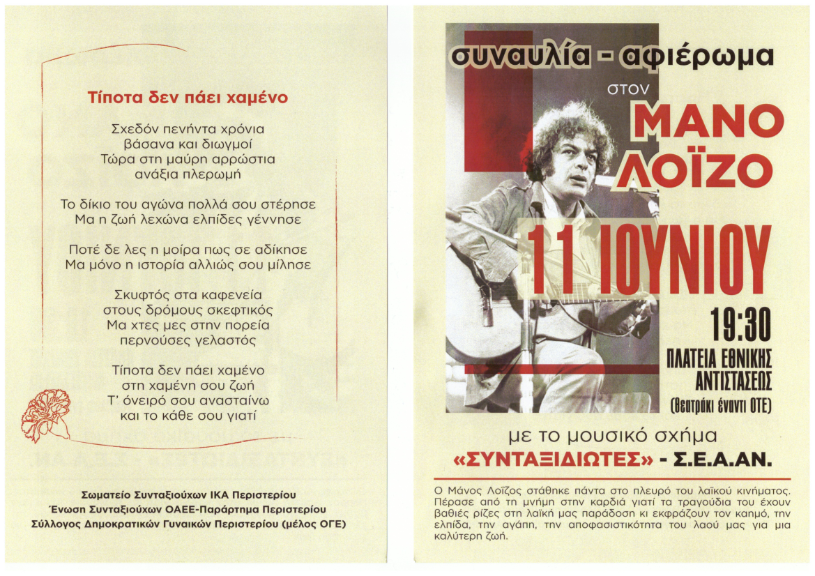 Η Ένωσή μας καλεί τα μέλη της να παρευρεθούν .Πούλμαν θα αναχωρήσουν από την πλ.Καραισκάκη στις 6μ.μ για την Ελευσίνα.